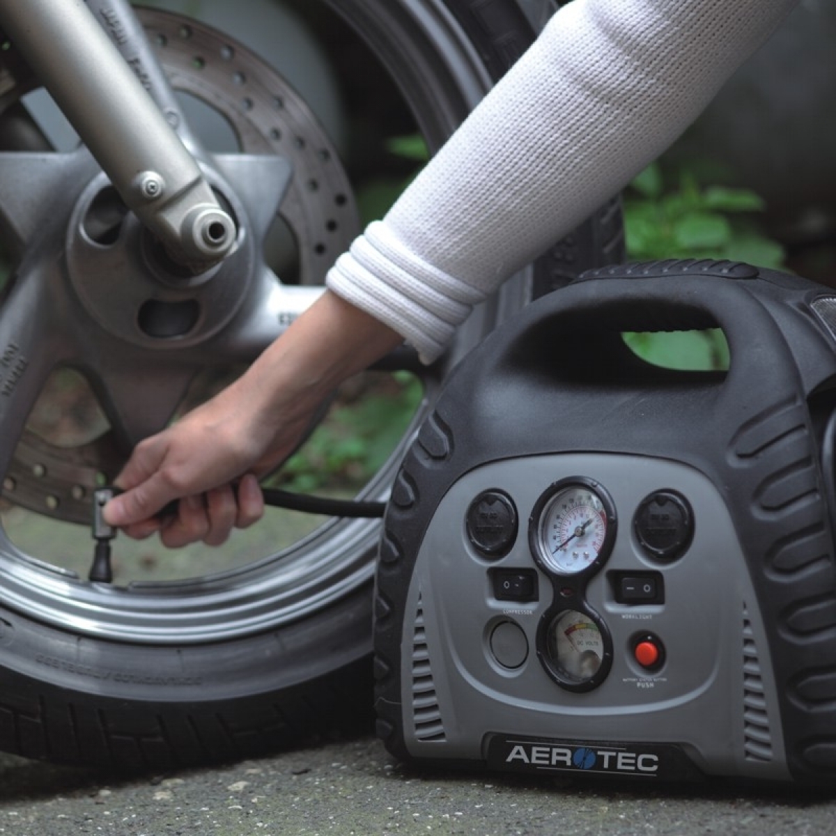 USB Anschlüsse zum Laden von Handy, IPod o.ä. Der integrierte 12 V Kompressor